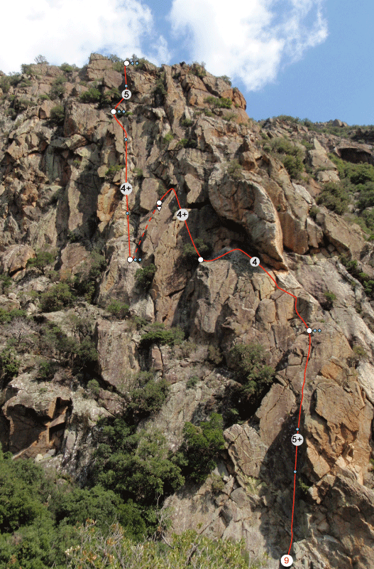 Voie du Fou (P. et D. Dainat, P. Maraval) 140 m, D+, 1969 La voie comporte un rappel d’une quinzaine de mètres.