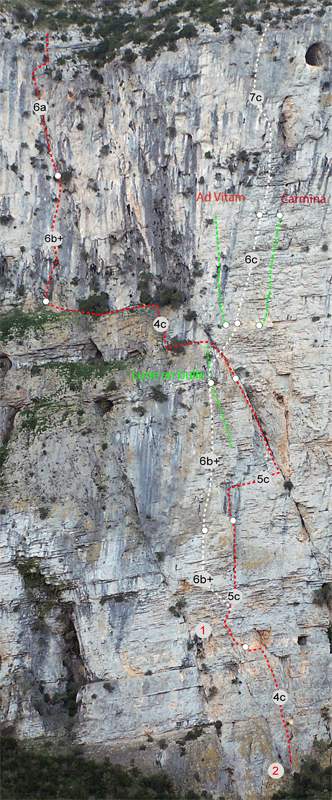 sont parfois espacés. Dans la Bourret Rigaud, on peut faire le second relais sur la vire de la Carmina le relais commun avec Lune en Bulle n'est pas obligatoire. |