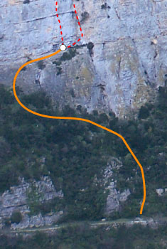 La voie des Millavois donnée pour mémoire qui n'a pas été achevée a vu la partie supérieure de la première longeur absorbée par un voie plus récente. . |