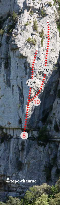 ) "Dérive sioniste" (P. Boissier) 2012" voie engagée, suit les trois premiers points de "In extremis" puis traverse à droite.