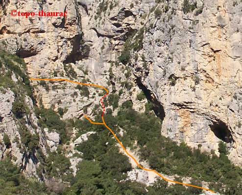 un ressaut avec corde fixe (photo) on accède à la